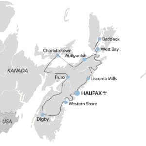 Entdecken Sie die einzigartige Lebensart der Maritimes und genießen Sie die entspannte Atmosphäre von Land und Stadt. Tauchen Sie ein in das schottische, akadische und indigene Erbe der Atlantikprovinzen. Besuchen Sie malerische Fischerdörfer in Nova Scotia und bestaunen Sie die raue Küstenlandschaft New Brunswicks an der Bay of Fundy. Erleben Sie atemberaubende Ausblicke, spannende Abenteuer und charmante Städte. Zu den Höhepunkten zählen Prince Edward Island, Cape Breton, der Bras d’Or Lake, St. Andrews by-the-Sea, Oak Island und der spektakuläre Cabot Trail.