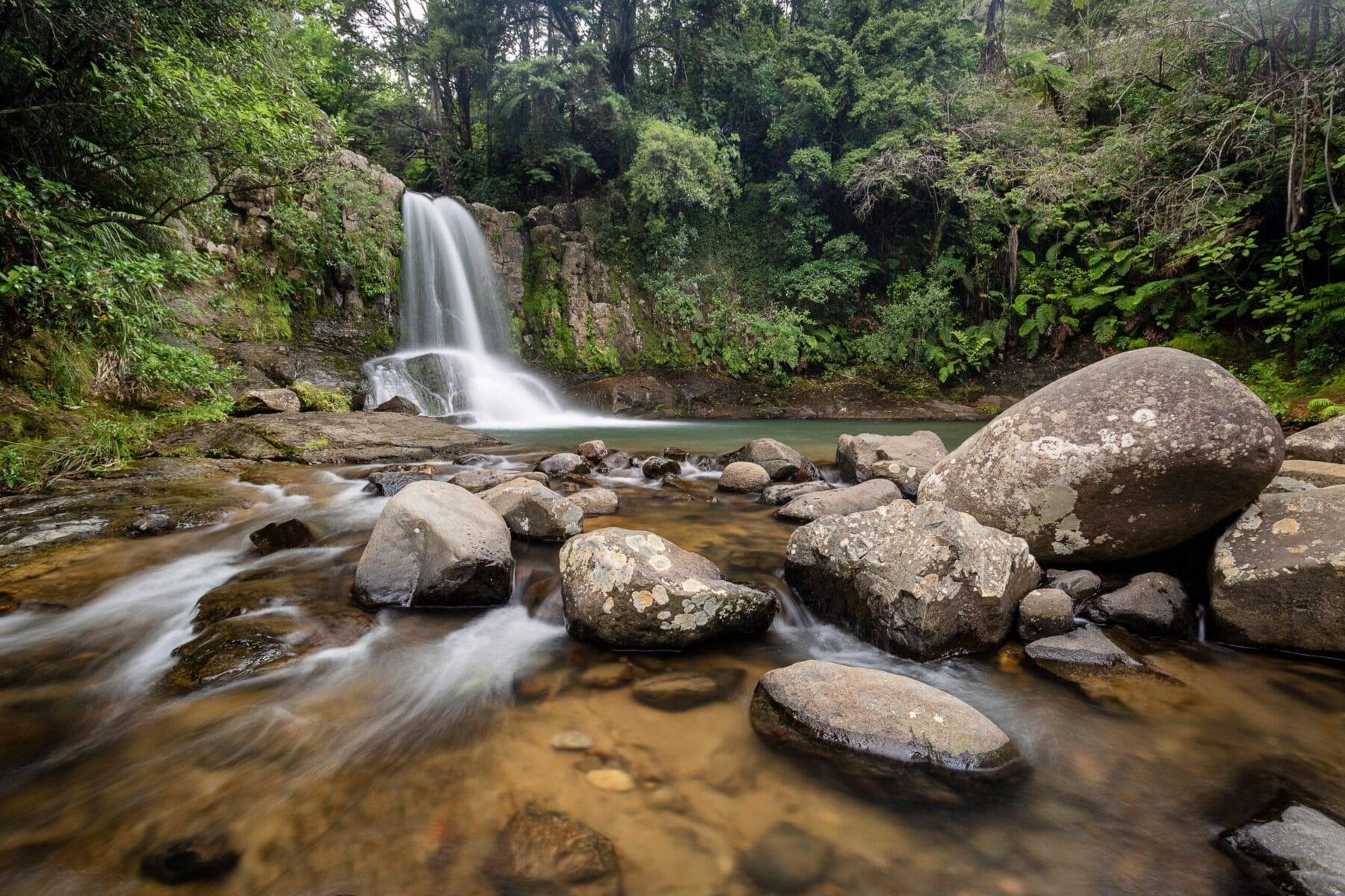 Die Bay of Islands liegt an Neuseelands atemberaubender Küste im Norden des Landes und lockt Besucher mit kristallklarem Wasser, üppigen Wäldern und unerschlossenen Stränden, die sich über 140 Inseln verteilen. Das Gebiet ist voller Geschichte, Heimat der frühesten Siedlungen der Maori und Europäer, wobei das nahe Waitangi als Geburtsort des modernen Neuseelands bekannt ist. Da es keine Siedlungen auf den Inseln gibt, entscheiden sich die meisten Besucher für Dörfer auf dem Festland wie Paihia oder Russell um von dort die Inseln zu erkunden.